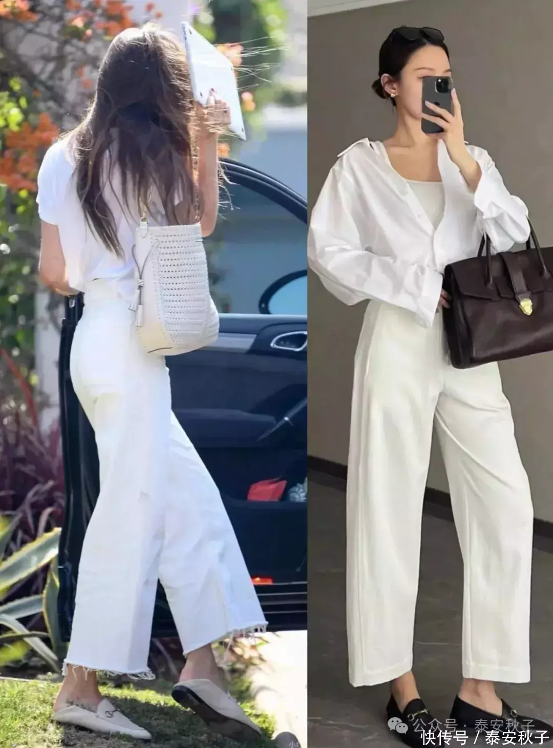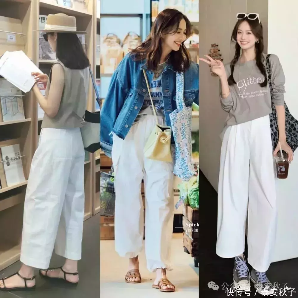 白色九分裤立秋之后,我们可以为自己多准备几条质地轻薄的白色九分裤,用来打造不同风格的早秋穿搭。在选择时,尽量选长度到脚踝上方2-3厘米处的款式。因为这样的设计,穿上后,不仅能拉长双腿线条,优化腿部比例,又能让自己秋季造型更具呼吸感,时髦又有气质。