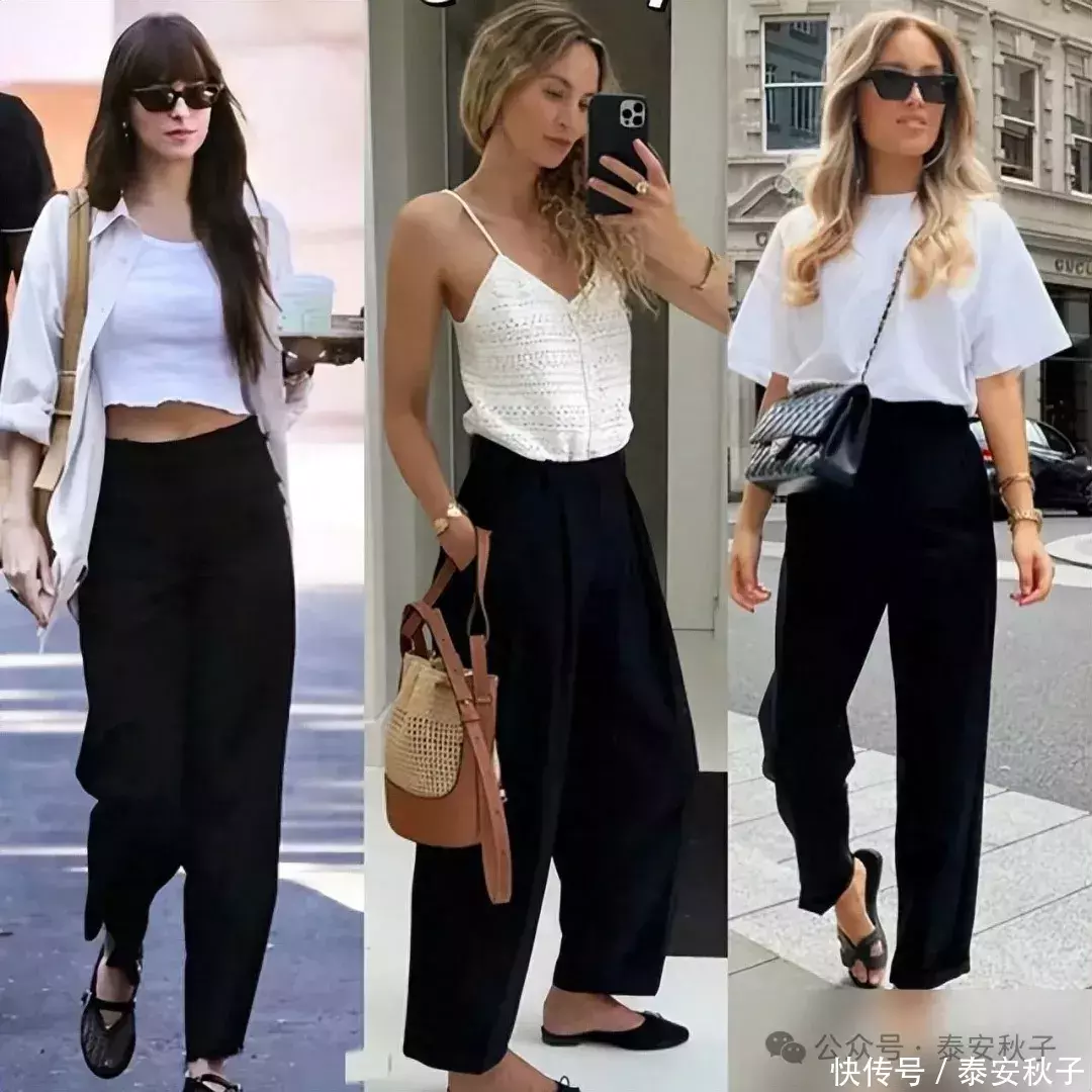 黑色九分裤能完美平衡经典与潮流的黑色九分裤,在刚一立秋的时节里,也翻身成了穿搭界的“主流”。如果你突然没有了灵感,又想穿出高级显瘦的效果,那就选它吧,绝对不会让你失望的。